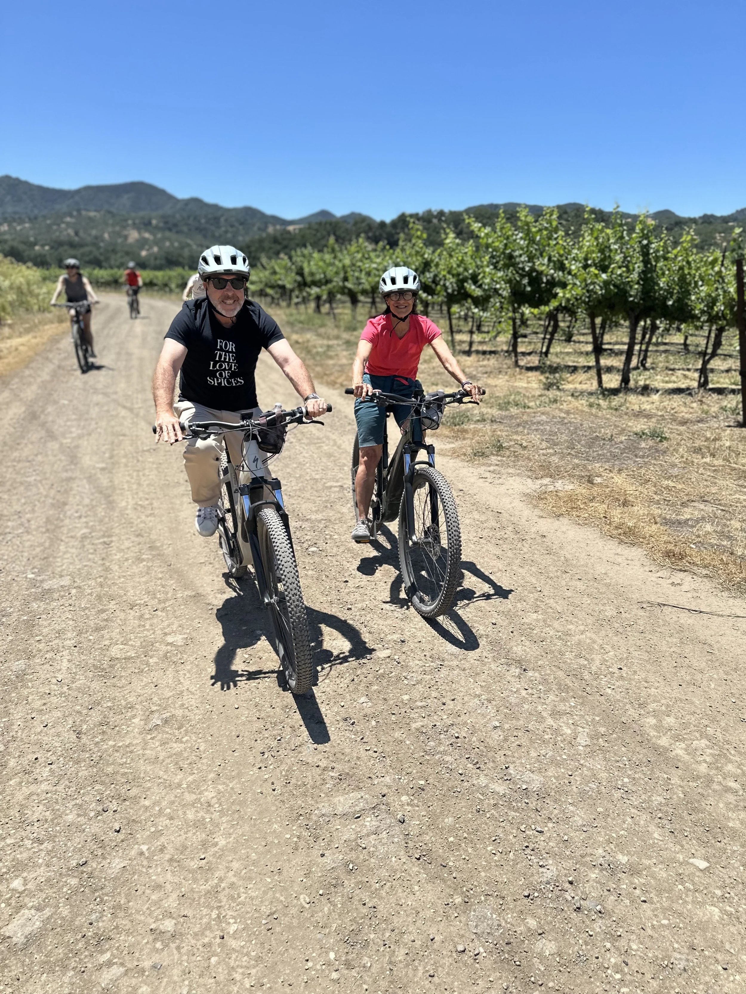 Join us for a fun and informative 5 mile eBike tour through the beautiful Whale Rock Vineyard. Along the way, you’ll learn about organic farming practices, toss a disc on the disc golf course, and enjoy a sip of sparkling rosé among the vines.